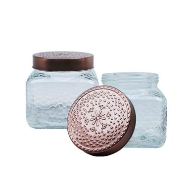 Sq Jar W/Rose Gold Lid 1.2L